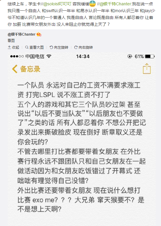 doinb在微博公开聊天记录吐槽Swift,据说中野矛盾很大!
