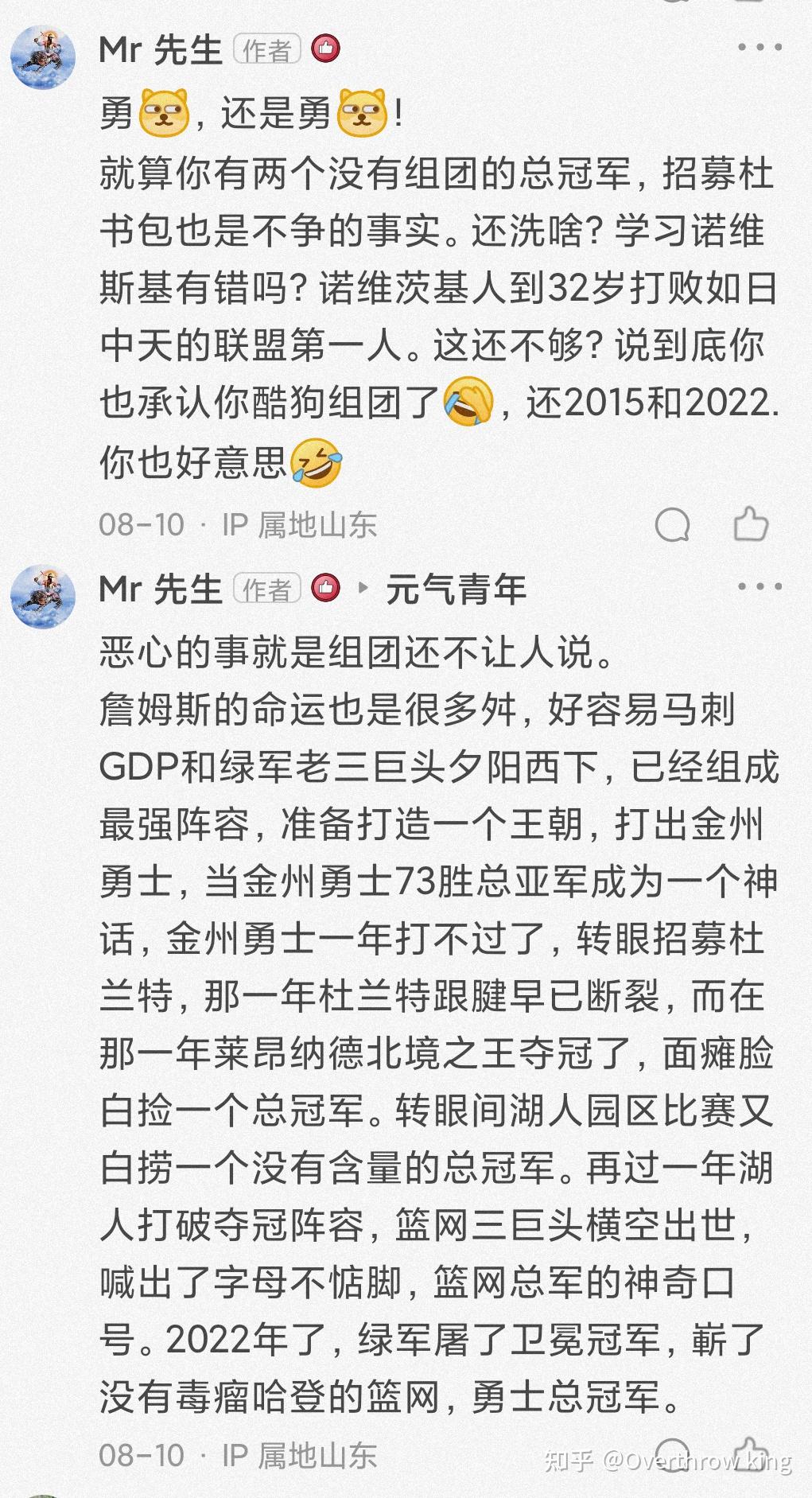 对杜兰特,蟹黄粉们天天一口一个让大家尊重勒布朗,可他们从来不尊重杜兰特。都是报团,詹姆斯是为了兄弟为家乡为学区房,杜兰特就是投敌,詹姆斯是圣人,杜兰特是小丑。