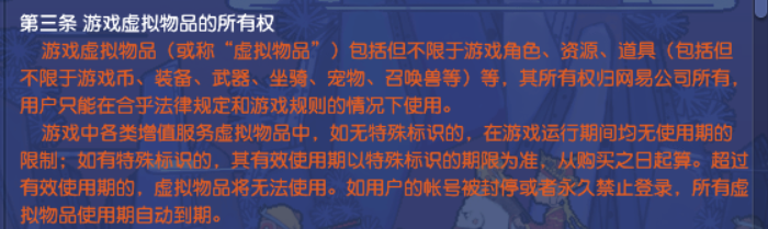 这一条,游戏角色包括所有道具,所有权归王姨,玩家只有使用权。
