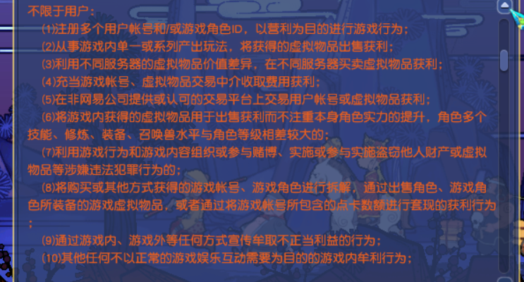 这一条,各种非正常牟利行为会危害到游戏的经济体系,王姨有权作出各种处罚。