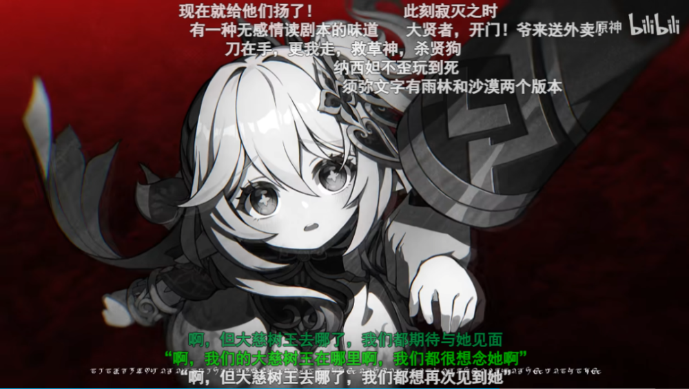 事实证明,这两个PV取得了巨大的成功。《生日快乐》这个PV的台词文案被玩家们疯狂二创,宣泄对教令院的愤怒;两个PV满屏的弹幕与评论都是对纳西妲的喜爱以及对教令院的声讨,为3.2版本的上线打开了一个完美的开局。