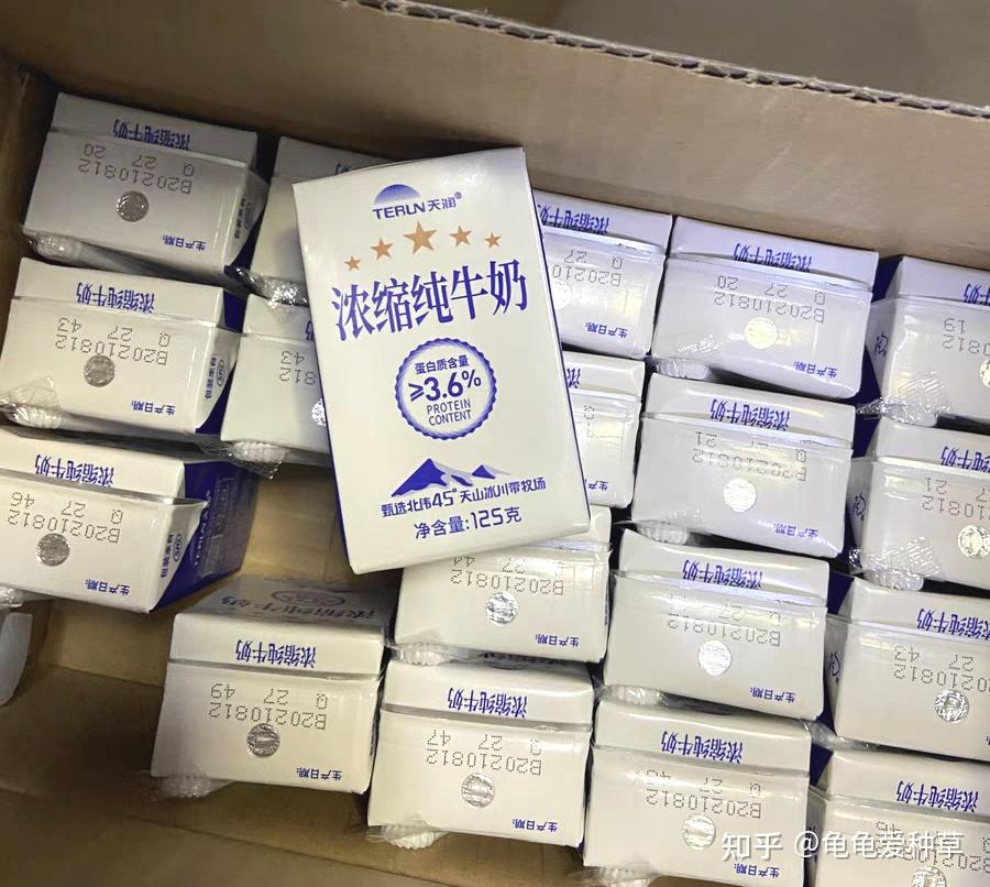 产地:新疆蛋白质含量:3.6g/100g脂肪类型:全脂牛奶包装规格与保质期:125g;60天推荐指数:?????推荐理由:新疆天润的浓缩牛奶,也是我非常推荐的牛奶之一,口感很丝滑,非常好喝!125g非常可爱的迷你包装!睡觉前喝一杯完全不会觉得肚子胀。好喝很有奶味并且容量小方便携带,以后会回购!