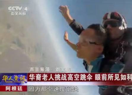 近日,六十八岁的刘文辉在教练的带领下体验了一把高空跳伞,从3000米高空一跃而下,以每小时230公里的速度冲向地面。
