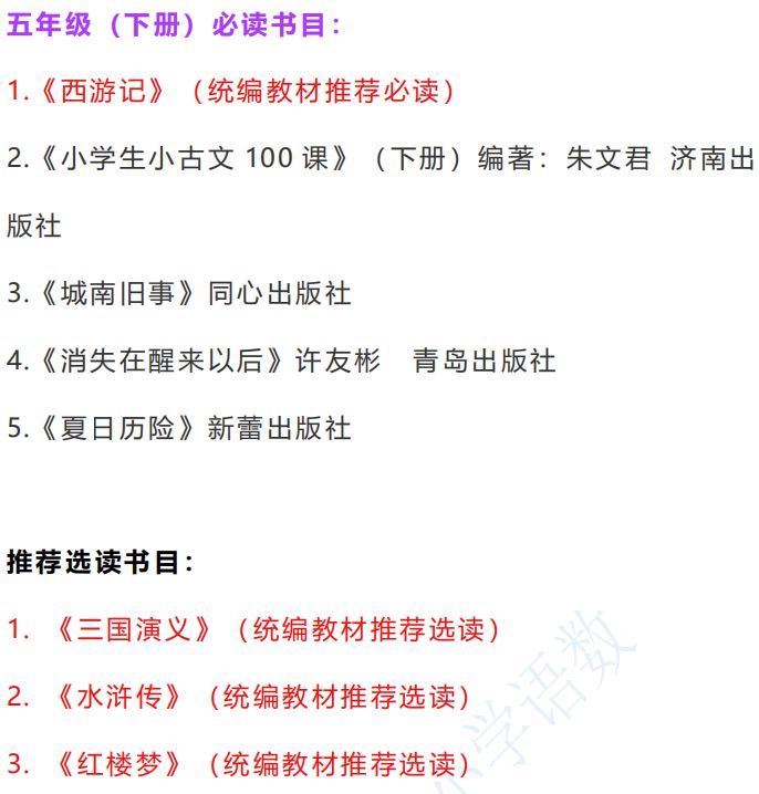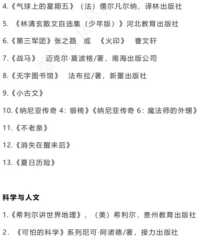 课外阅读书目推荐