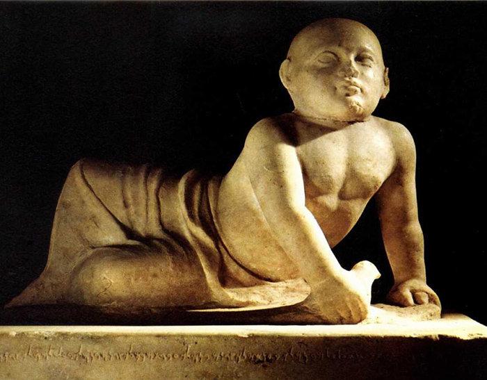 我上次用过的这张图片,是在西非的迦太基遗址的,这个会和埃及的书吏、印度那些佛像是同一种人,身份会是知识分子。印度最早的完整的文字就是阿育王时期的,可以这么说,这种拼音文字的起源向上溯源也会是这种面孔,语言会接近东阿尔泰语,并不是什么闪米特人或现在已近失传的阿卡德语。