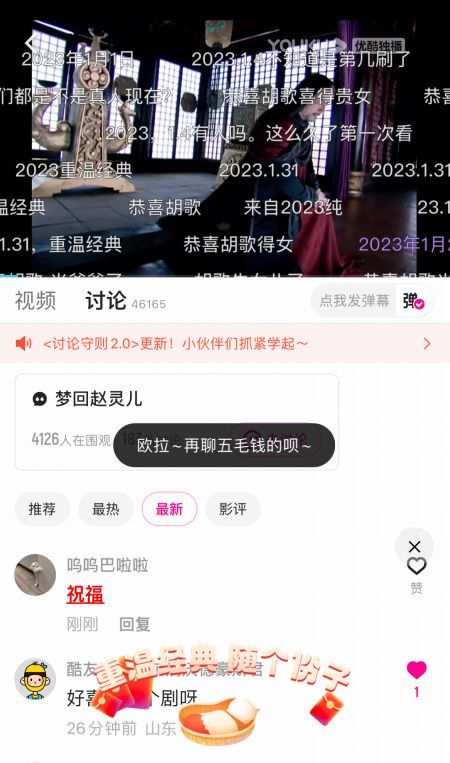 因为《甄嬛传》已经是不少人的下饭剧,这一变动很快就引起了网友关注,甚至惊动了“槿汐姑姑”的扮演者孙茜。2月已有优酷员工在采访中透露,“截至目前发送回宫的弹幕评论已经有40多万条”,反响超乎预期。