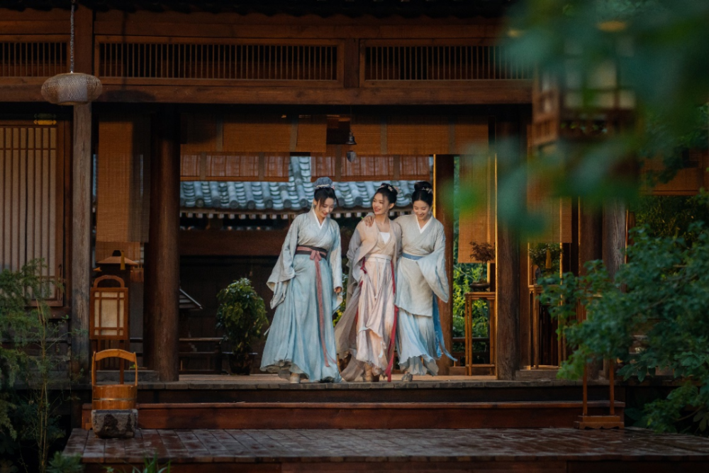 主角三人入住宅院后,她们生活在一个错落有致的建筑群中,层层叠叠,勾勒出一个金翠耀目、罗绮飘香的盛世。