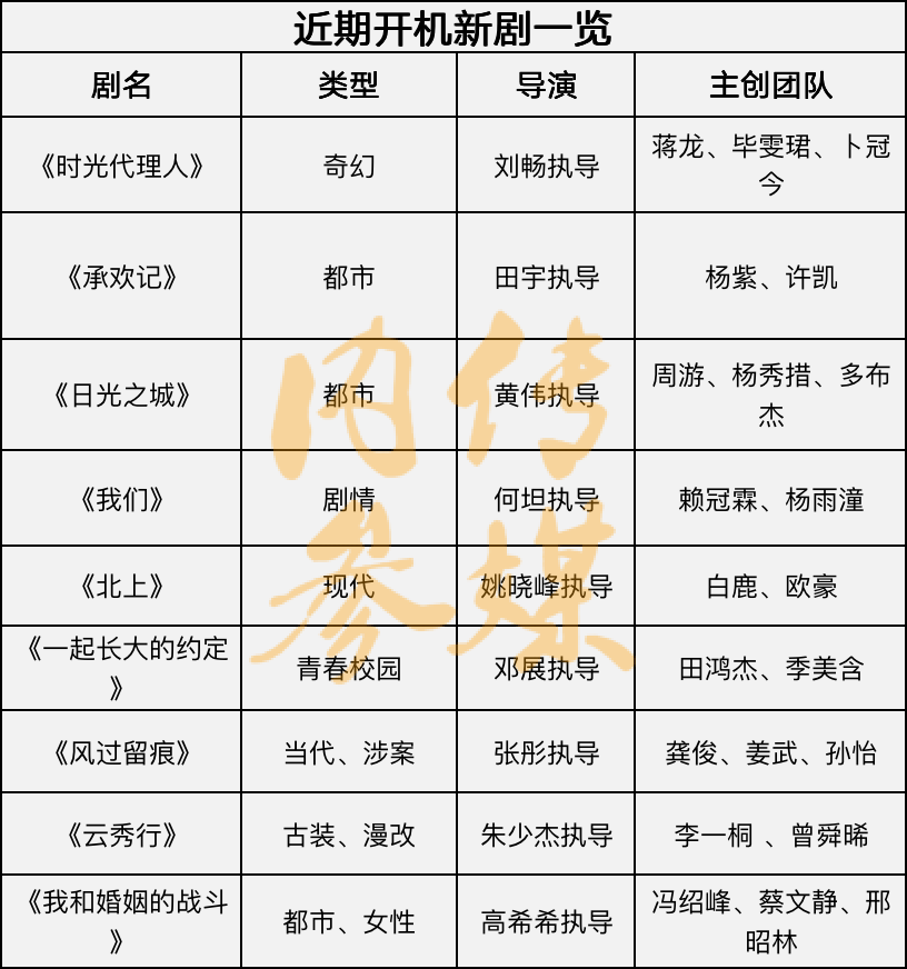 以下是CMNC—传媒大眼梳理汇总的近期开机新剧信息: