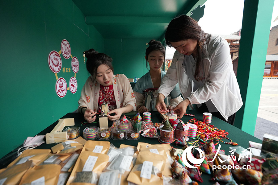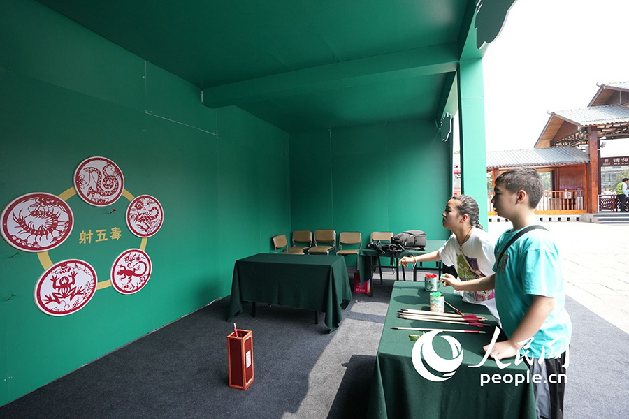 游客体验多彩端午节活动。人民网记者 王天乐摄