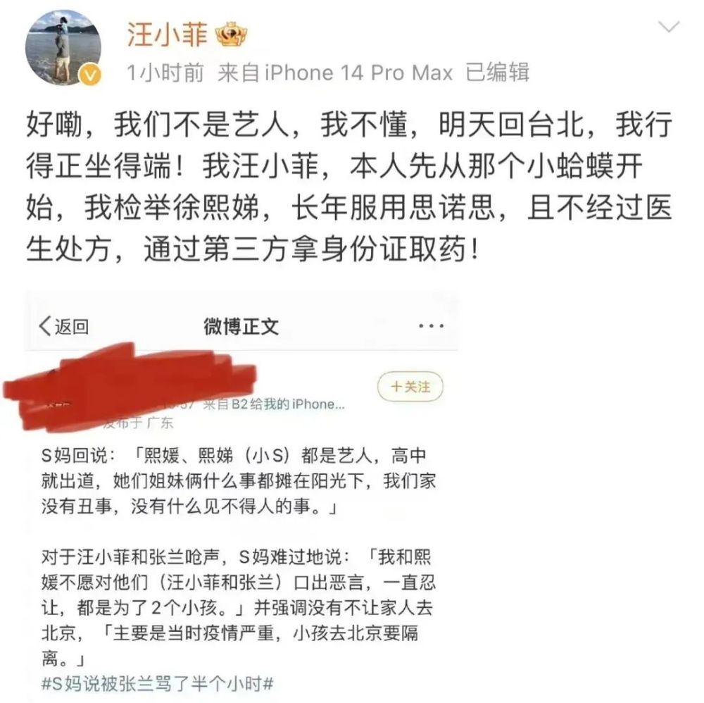 这边张兰在迎接好日子,那边汪小菲却比较平静,没有出来说话。其实,关于大小S嗑药的事情,汪小菲早就说过,他说大S长期服用违禁药物,不能出门。小S长期服用思诺思,且不经过医生处方,通过第三方拿身份证取药。
