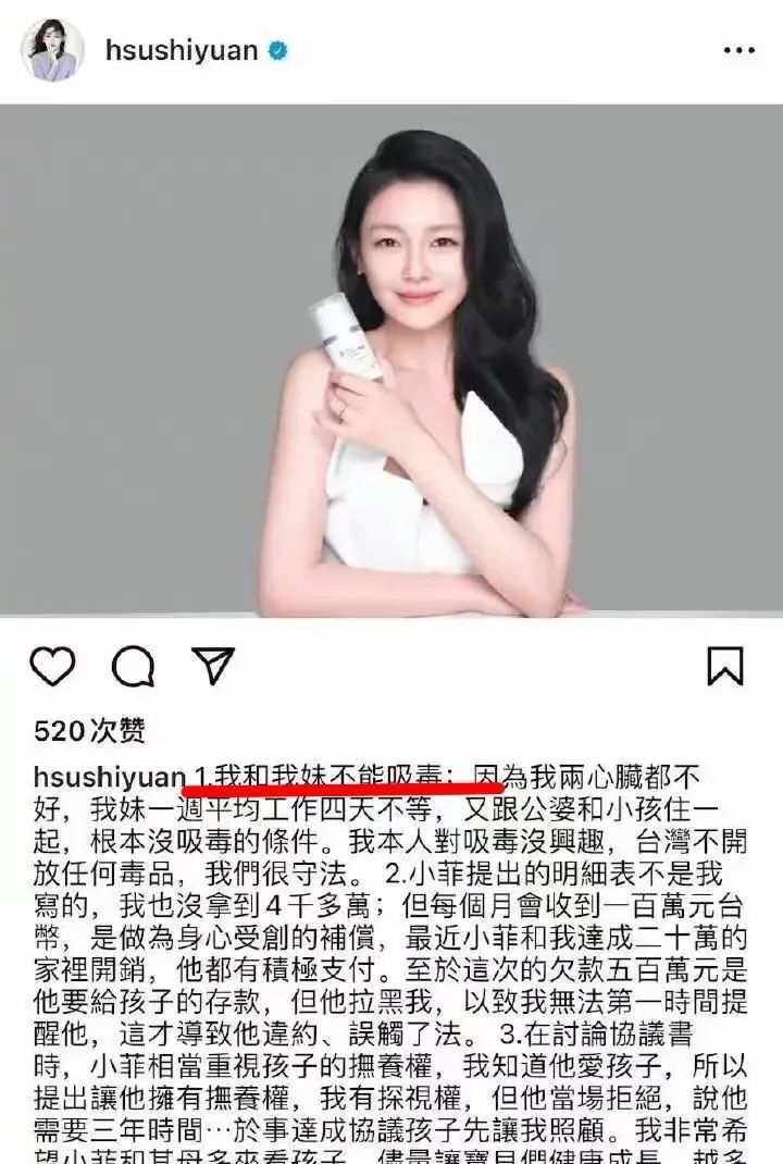 当时,S妈的回应是,大S流产后身体不好,她吃的是治疗癫痫的药物。后来,大S工作室发布声明,否认嗑药,她回应后,这件事才算是告一段落。