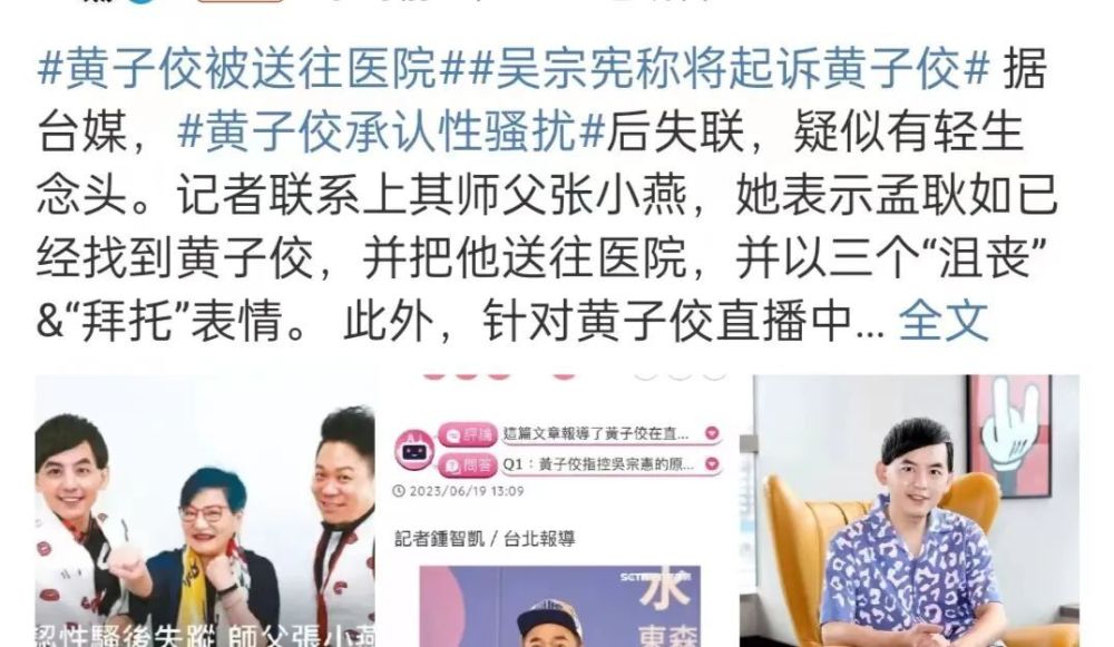 不仅如此,范晓萱、周俊伟、阿雅等一众艺人,都被拉下水,黄子佼爆料结束后就失联,有轻生念头,已被送往医院。
