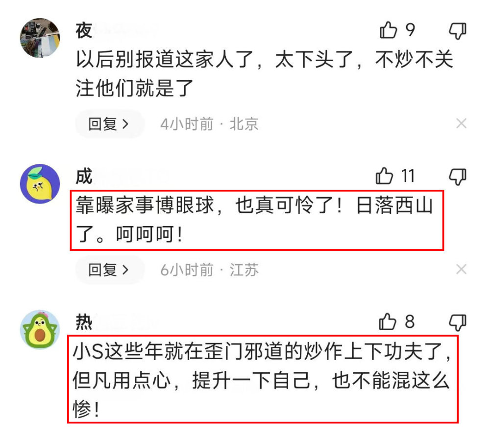 还有人嘲讽说,小S但凡把精力放在正地方,也不会混这么惨。