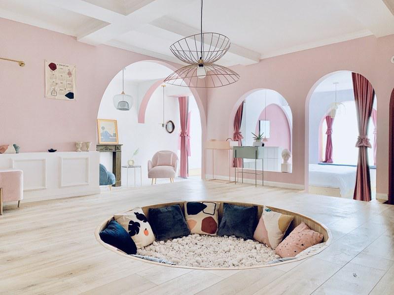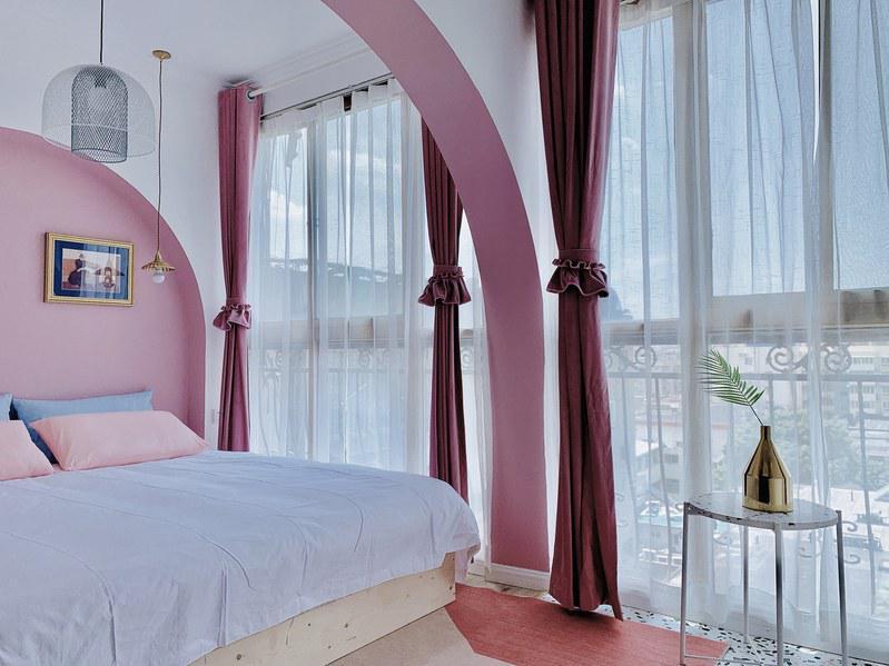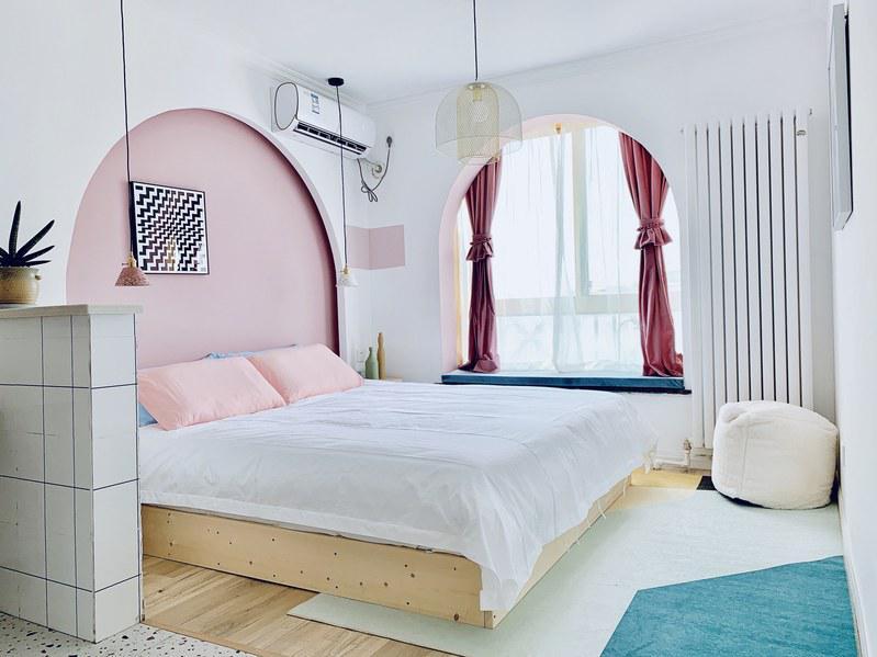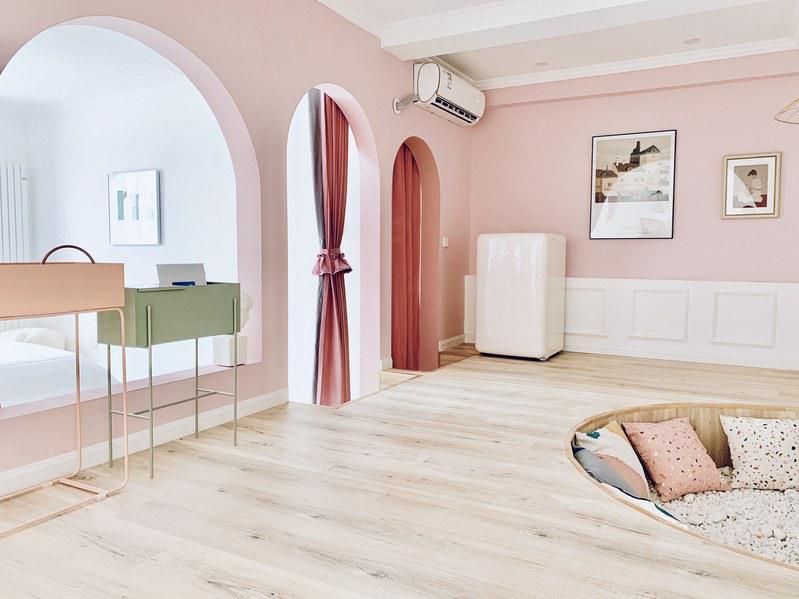 这间民宿的地理位置相当不错,在西安市核心地段钟楼商圈附近,距离钟楼、回民街很近,附近还有SKP高端购物中心,可以充分的感受到西安的潮人文化,整个房间是那种粉白相间的,超级粉嫩,就像是个水蜜桃一样香甜,房间里还有大大小小的圆拱门洞,在这之间钻来钻去,拍出来的照片都充满了俏皮感。