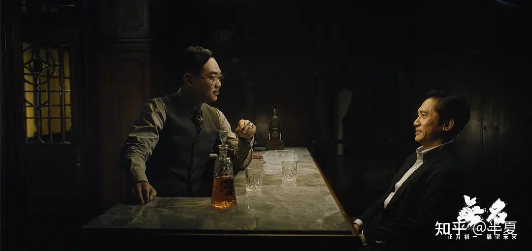 有些片段反复刷了几遍我才看懂:影片采用开头和结尾相连的环形叙事方法:开头何先生(梁朝伟)坐在椅子上等待,陈小姐(周迅饰)在餐馆收到一杯匿名人士点的咖啡,叶先生(王一博饰)在浴室整理自己的领带,叶先生和同事吃完早餐去了日本兵被杀的现场,电话铃声一直在响,那是gcd机要员张先生(黄磊饰)给日本军官打电话要“弃暗投明”,何先生(汪伪政府梁朝伟饰)负责接应机要员的情报,一通细节性的对话后何先生一个人在饭店点餐时,发现袖子上有一滴血,他反复揩拭,其实那时候他已经杀了他,并且不得已暴露了自己的身份。他和表弟大鹏(部长),另一个日本高层谈话的故事线应该在之前,得知德国要进攻苏联,日本人会从满洲出发,途径西伯利亚夹击苏联,意图彻底解决延安问题,下一个镜头梁在甜品店买糕点,再下一个镜头周迅提着精致的甜品包装走在回自己寓所的路上,包装打开后取出一张小字条阅读,阅后即焚,是梁在给组织传递情报。