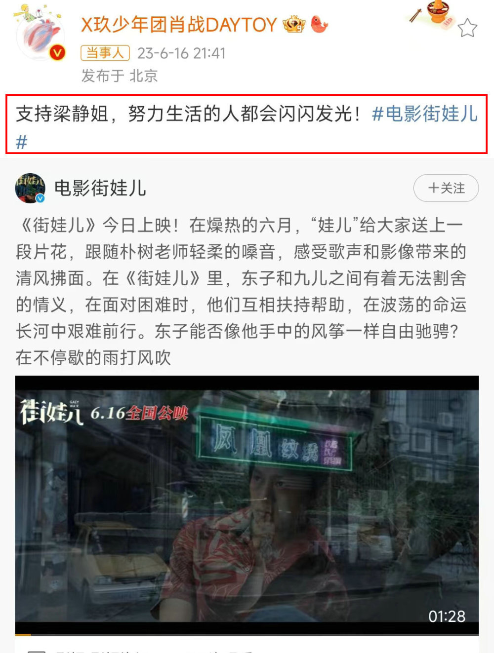 但肖战为梁静的新电影《街娃儿》宣传,却要她的社交账号、以及香港不实的一切……
