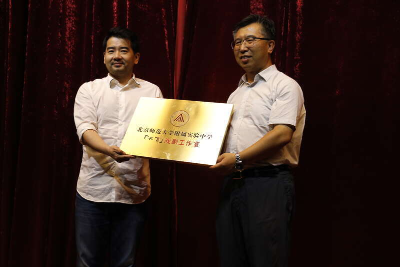 当天,由北师大实验中学与中央戏剧学院导演系合作共建的北师大实验中学“不言”戏剧工作室成立,北师大实验中学校长李晓辉和中央戏剧学院导演系副系主任杨硕共同揭牌。