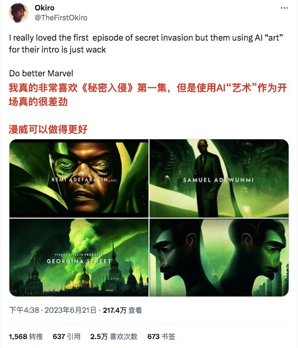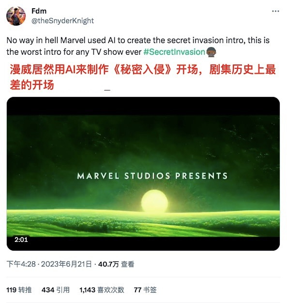 #TNABO# 漫威使用AI人工智能制作《秘密入侵》开场字幕引起激烈争议
