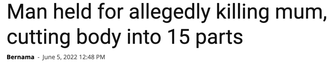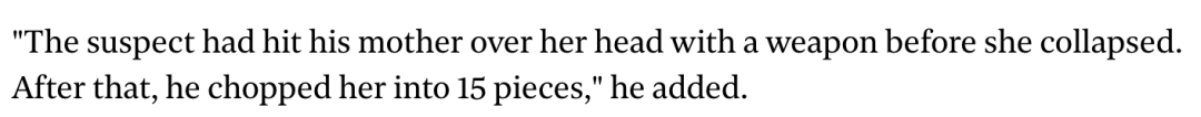 据悉,嫌疑人先是杀死了他的母亲,然后将她的母亲切成 15 块,