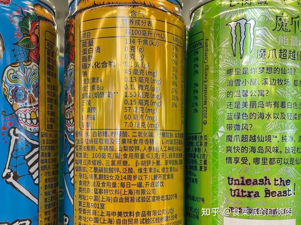 ▲这款能量饮料牛磺酸的添加量是57mg/100ml,一罐大约能提供140mg牛磺酸。