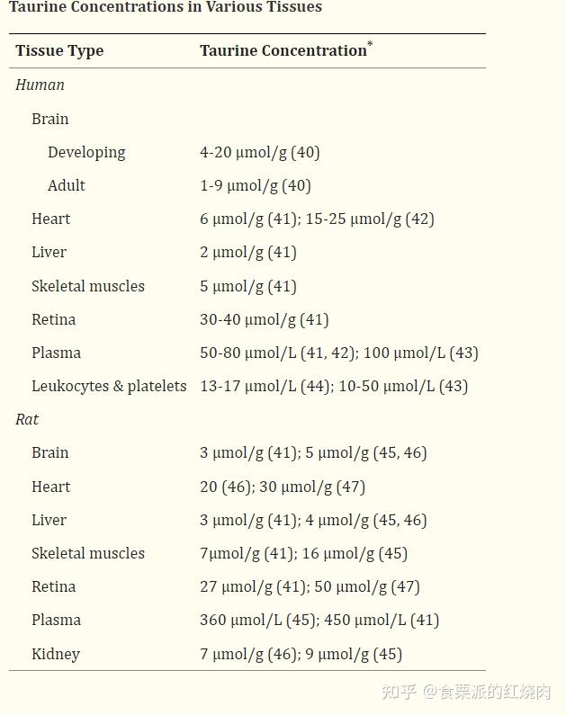▲人体组织中的牛磺酸浓度,视网膜中浓度特别高(30~40μmmol/g)参考资料[3]