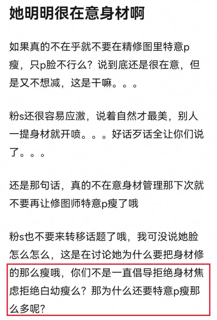 要么说她的身材是假的。