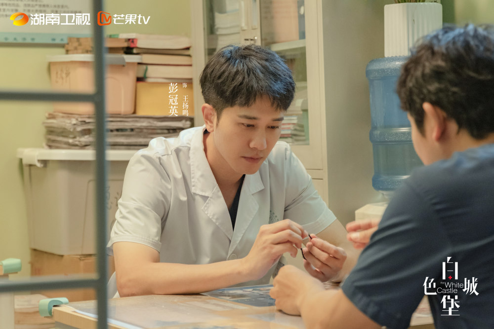 《白色城堡》的王扬鸣工作热情,积极乐观,有事冲在最前面,被“师父”路清奇调侃为“傻大个”。剧集开篇有个情节,王扬鸣和师父聊到篮球时说自己大学时是篮球队的主力替补,遭到了师父的鄙视,觉得白瞎了这么高的个儿了。实际上,这句台词是彭冠英修改的,原剧本里写王扬鸣是篮球队的主力。“我给改成了主力替补,觉得这样更符合王扬鸣的人物调性。虽然没有稳定的上场时间,但只要机会到来他一定会冲上去紧紧把握住。因为他有使命感,愿意去承担责任。这是我在创作过程里赋予角色的特点,也跟他在医院的所作所为非常吻合。”