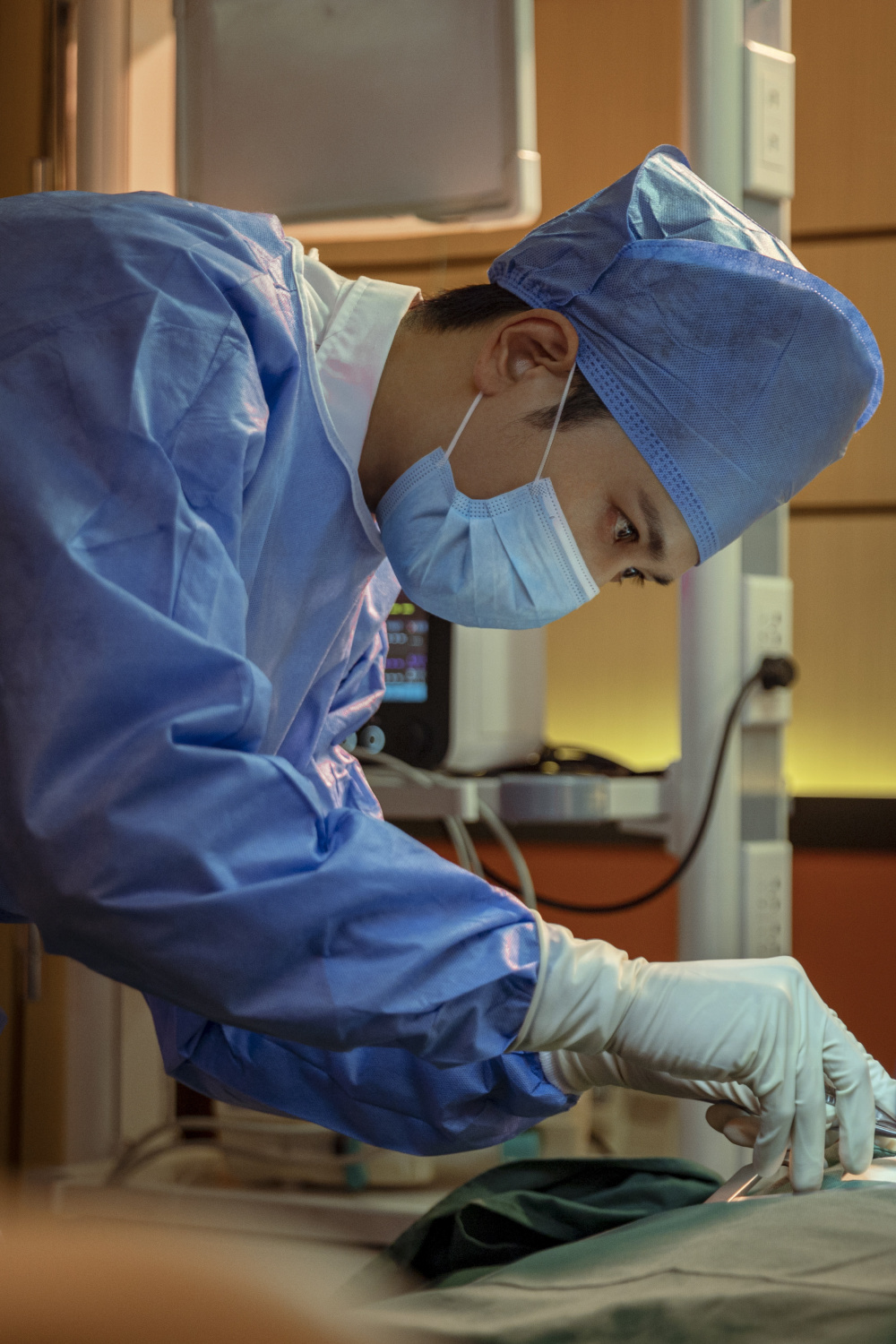 彭冠英也表示,这算是全剧难度系数最高的一场戏。王扬鸣不仅要在非常紧急的情况下救人,要救的还是自己的爱人。这场戏表达的层次很多。“进入手术室需要戴着口罩,等于演员失去了很大部分用五官表演的可能性,我只能用眼睛和声音,还有外化的形体和气息去展现。”一般他会先跟导演说一下自己打算怎么演。拍这场戏的时候,他跟导演说没办法在拍之前给到表演阐述了,只能把手术的实操配合机器走一遍戏,然后就当成真的去演。王扬鸣在手术前的自言自语“我可以的,我可以的”,也是彭冠英配合当下情景现加的。“我觉得自己特别无力,太需要有人给我打气了。这个人只能是我自己。”