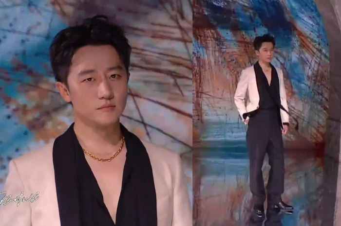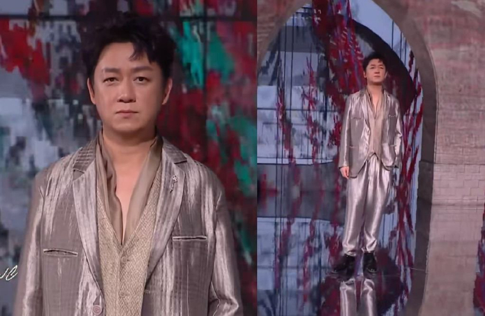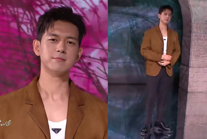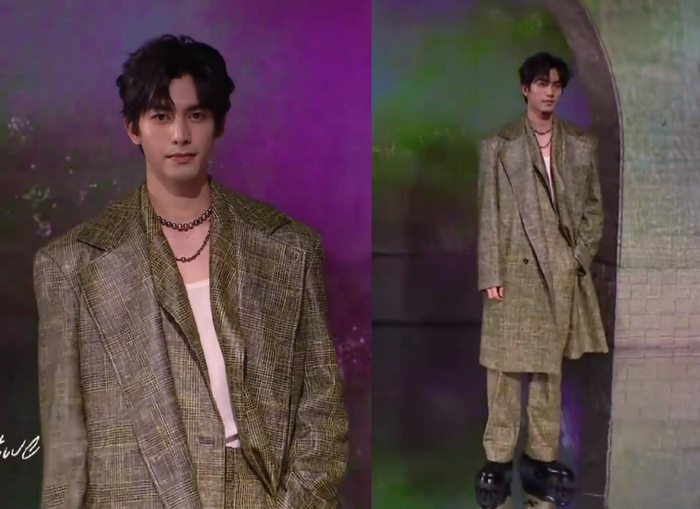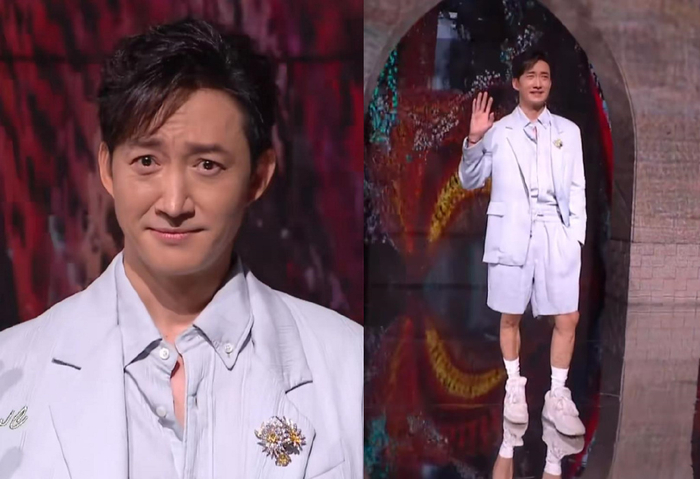 潘粤明瘦了不少,至少当镜头扫过去,双下巴不见了。可是他再瘦也无法改变头的大小,所以肩膀比较窄的他仿佛开了大头特效。溜肩的人穿材质软塌的西服,不太可能呈现好看的效果,所以潘粤明这身造型只剩舒适感了。