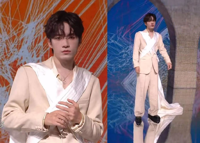 爱豆张颜齐的穿搭很有个性,在西装外绑了一条长到拖地的带子,这就是时尚吗?完全看不懂。