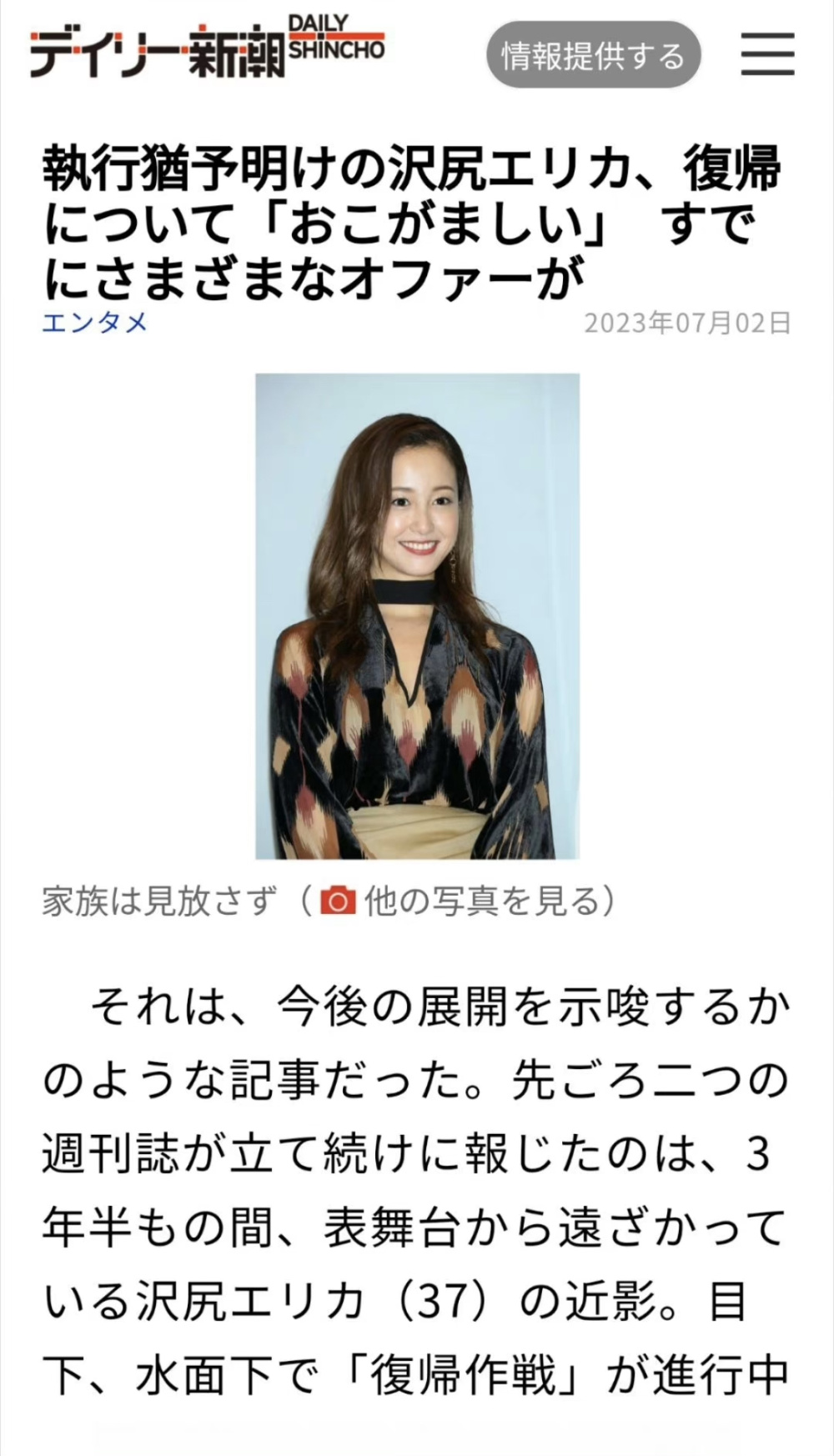 配文字里行间也都在强调37岁的泽尻“美貌”更胜从前…