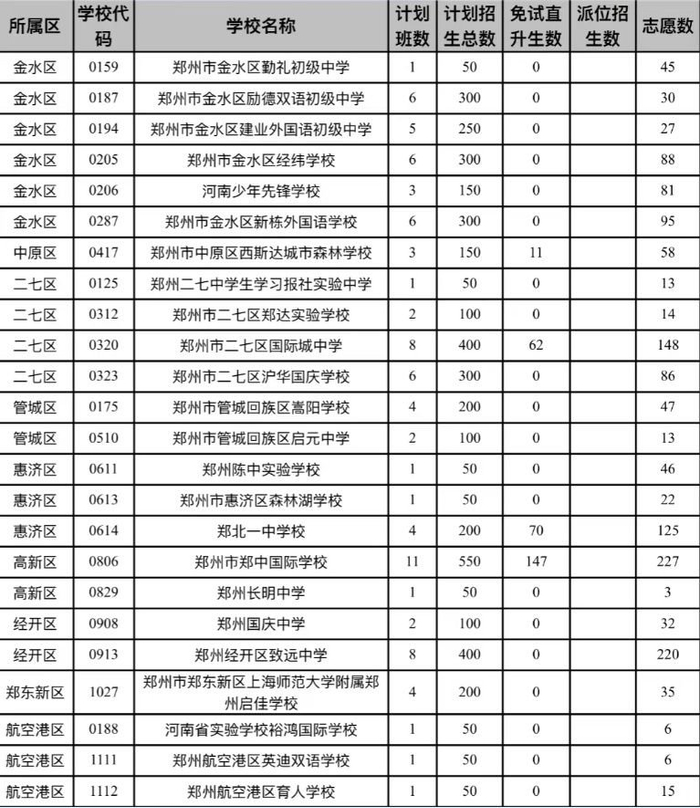 首先进行派位的是郑州市金水区新奇初级中学,该学校计划招生500人,其中直升生占用招生计划42人,报名人数899人,实际派位招生录取458人。