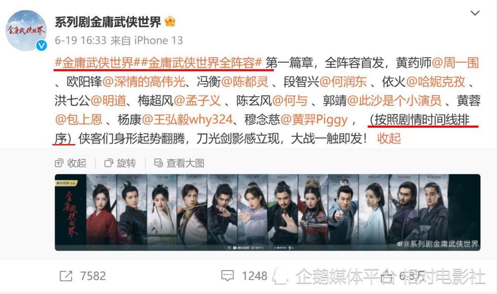 众所周知,目前关于金庸先生名作“射雕”首部曲的——《射雕英雄传》,所改编的全新影视剧作品,已有一部由周一围、高伟光、陈都灵、何润东、明道……等,联袂主演的系列武侠大剧《金庸武侠世界》(已杀青);