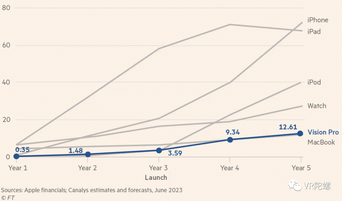 尽管遭遇挫折,市场情报机构 Canalys 仍相信,苹果的用户群将在推出后五年内突破 2000 万。Canalys 分析师 Jason Low 表示:“鉴于产量有限,该产品将很快被苹果忠实粉丝和美国高净值用户预订。” 他目前预计苹果明年的产量将达到 35 万台,五年后将增至 1,260 万台。