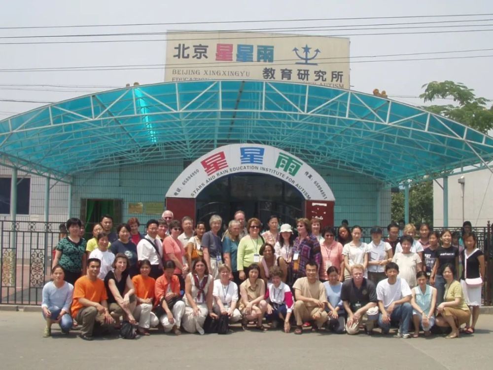 ▲ 中国内地孤独症教育工作的开展比美国等发达国家晚了 50 年,“星星雨”的发展和我个人的成长都得到了美国、德国、日本等国专业学者和专家的支持,此图为美国的特教专家到“星星雨”提供专业支持时的合影,前排左 2 为吴良生。