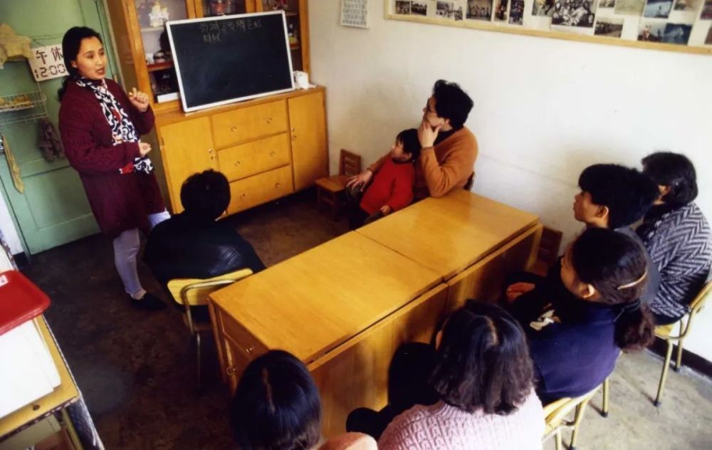 ▲ 1996 年吴良生在北京星星雨教育研究所接受“星星雨”创办人田惠平老师的理论培训,前排站立者为:田惠平,后排右2为:吴良生。