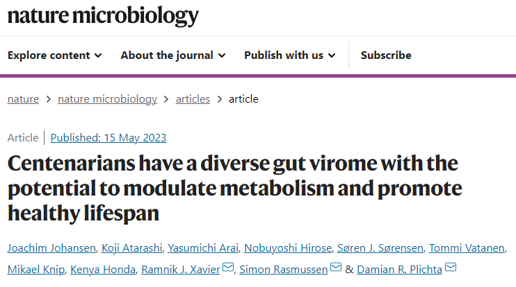 《自然》子刊上发表了两项最新研究,一项是发现广西百岁老人的肠道菌群结构竟与年轻人“相似”;另一项是揭示了肠道微生态的重要组成部分——肠道病毒的作用被忽视了,这些病毒可能隐藏着长寿秘密。
