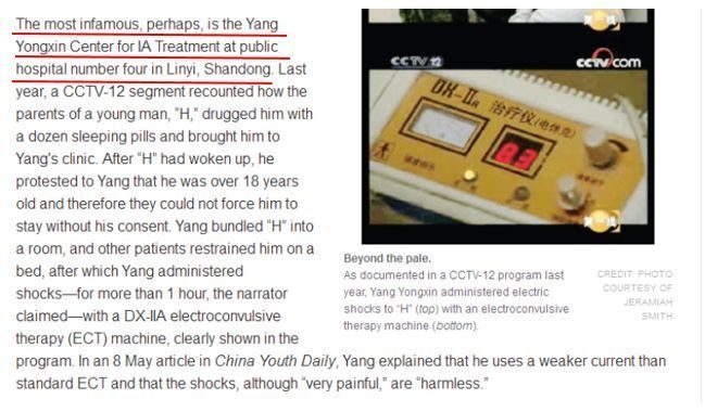 很多网友称杨永信是丧心病狂,《科学》杂志用“最臭名昭著的”来形容他。当时,我是国内第一个站出来批判杨永信的精神科医生,他以“治疗”为名对青少年群体进行“酷刑”。他不但没有解决青少年的精神心理问题,反而制造了数千个复杂性创伤后应激障碍(C-ptsd)的青少年患者。