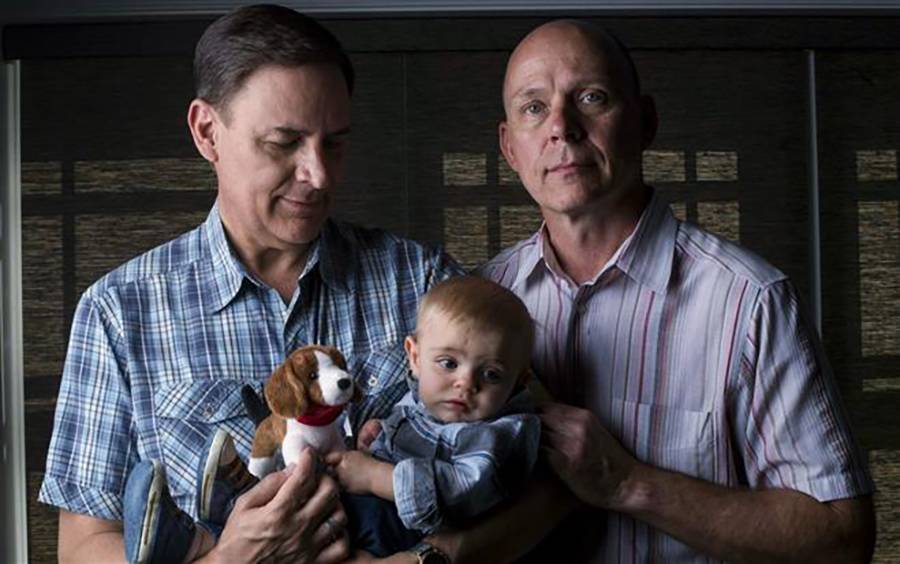 ▲ 同性恋人 Jay、Rick 和他们的通过代孕生产的儿子 Jacob。两人2008年结婚,在此之前已经有两个通过代孕生产的女儿。两人也因代孕而起的纠纷,身陷漫长的法律诉讼和40万美元的法律费用。 ? Amanda Voisard / jsonline.com