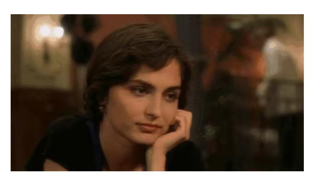 女主伊洛娜,第一次出现穿着一袭浅蓝色的长裙,领口开的很低,她的眼睛充满神情,她浅浅的笑的时候,即使女人都会为她心动吧!