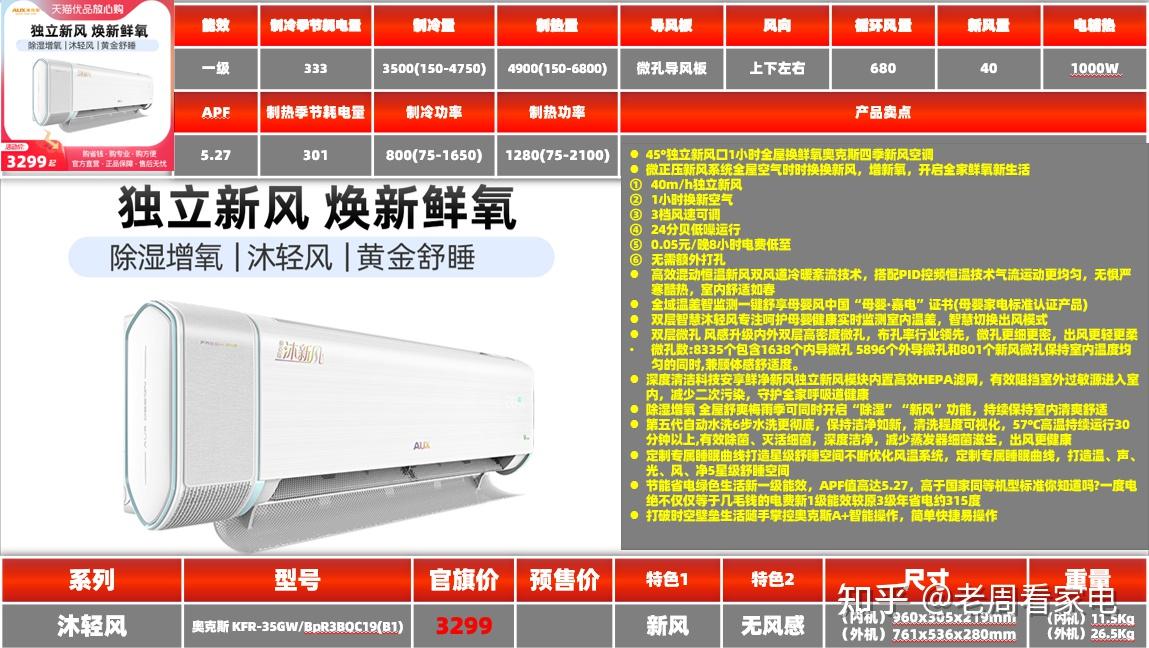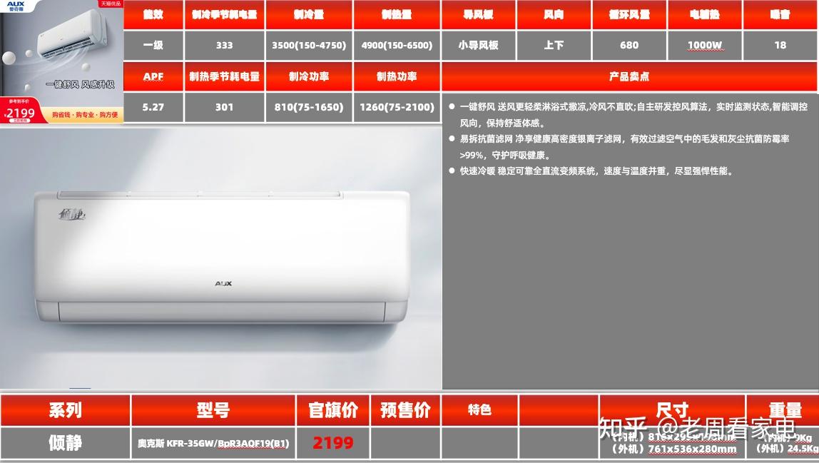奥克斯 KFR-35GW/BpR3BQC19(B1)定位:中端