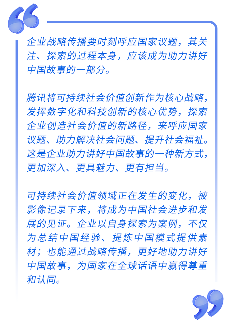 腾讯可持续社会价值副总裁肖黎明受邀,在开幕式中发表了“用社会价值影像传播好中国故事”的主旨演讲,他表示: