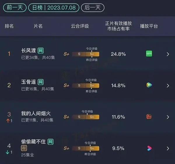 桃的《长风渡》数据已经坚挺,鹅的《玉骨遥》也是来势汹汹。