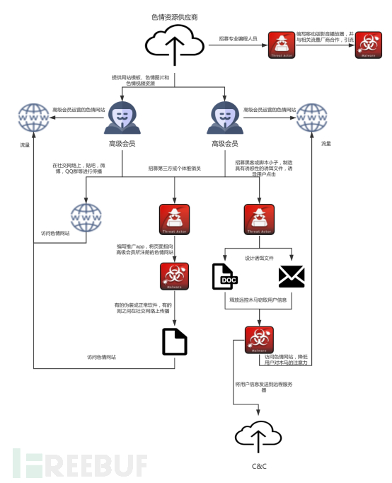 至此我们可以描绘出这类色情网站大致的运营流程。