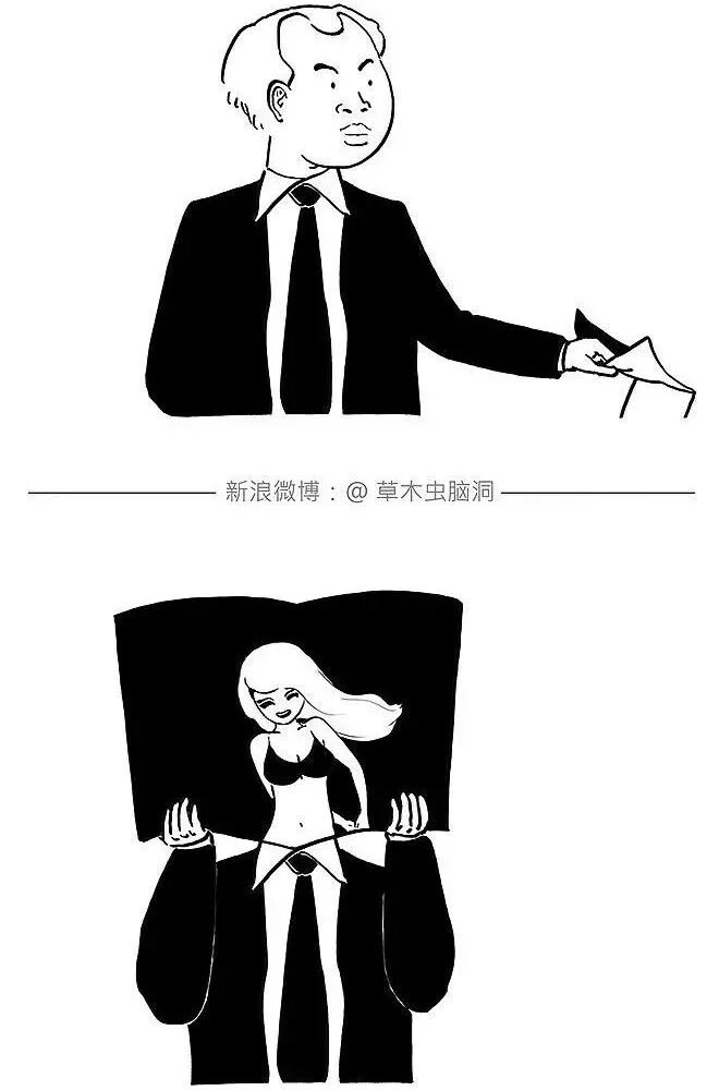 (提醒:千万不要用这样的姿势,驾驶你的法拉利)草木虫脑洞最擅长的就是,用身体的某个特征,去表达一些简单明了的小趣味。比如下面这些漫画,有趣味却又不低级,有内涵却又不油腻,虽然污力滔滔,却又感觉十分可爱!这些漫画,只有成年人才能秒懂哦……大叔的真实面目▼