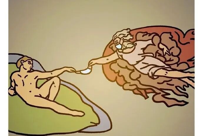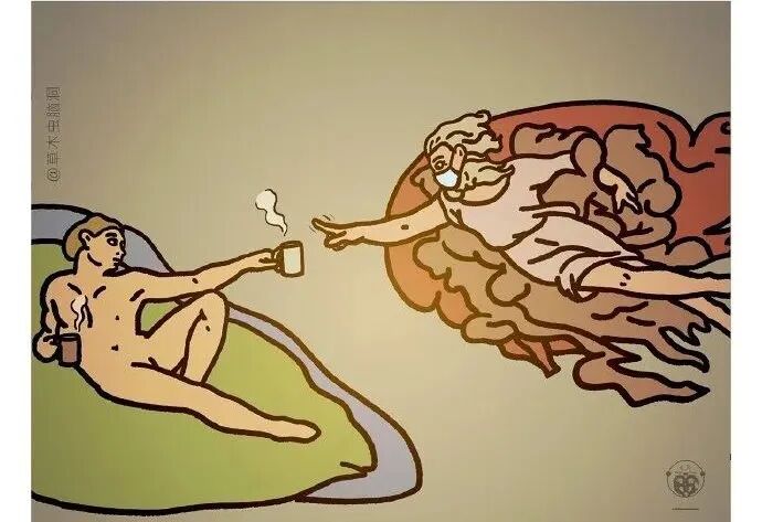 (醒一醒,你没有女票……)还有一些灵感,来自于社会发生的事件。“当我很受触动的时候,我就会动手把它画成漫画。”疫情发生以来,欧洲的各种奇葩操作令人瞠目结舌,草木虫也画了一组画,来反映这些事实。要咖啡不要口罩……可能就是传说中的:生命诚可贵,爱情价更高,若为自由故,两者皆可抛……▼