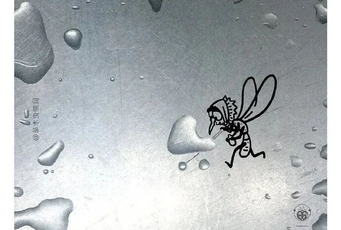 但是在草木虫眼中,这全都是素材:画上一只蚊子,蚊子手里拿个奶瓶,这个水滴,立刻就变成了婴儿的摇篮车。神奇不神奇?你看,是不是当了妈妈的蚊子,也变得温柔了许多呢……▼