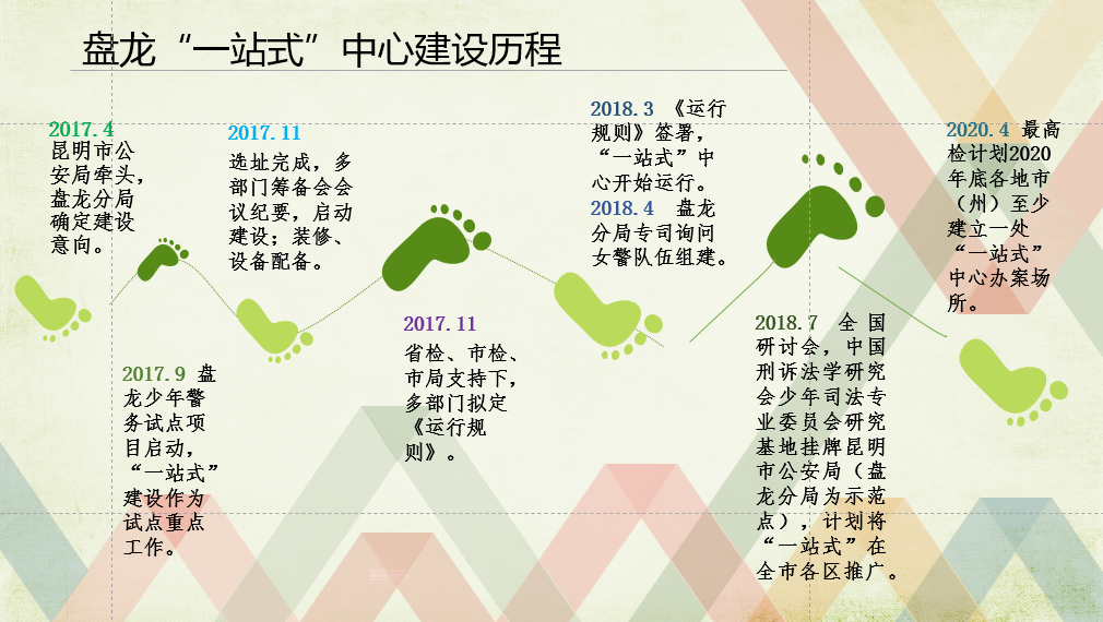 盘龙区“一站式”取证与保护中心的建设,在区委政法委的领导下,采取公检法司与政府相关部门、社会组织联合建设的方式。目前共有“一站式”成员单位16个。从2017年11月确定方案并实施建设,2018年3月建成运行,历时半年。