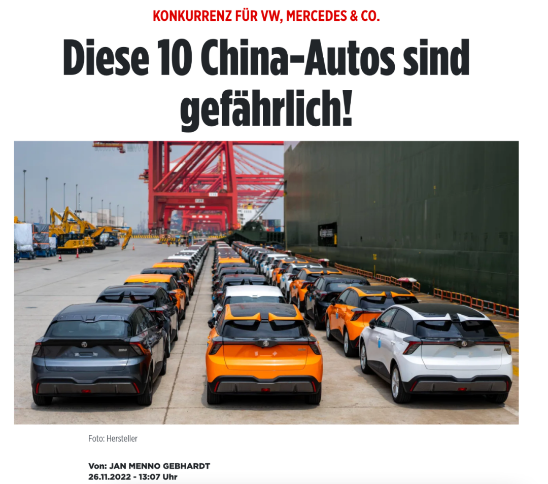 图片来源:Bild官网新能源汽车尤其是现在的智能汽车,对于德国来说是较新的领域,而中国市场已经经历10余年的发展。德国虽然具有良好的工业基础,在生产质量、零部件整合等方面具备很强的技术积累,但在新能源汽车领域,面临着供应链受阻、基础设施不足、生产成本高涨等问题。反观中国,已经是全球最大、发展最快的新能源汽车和智能网联汽车市场,在一些电动汽车技术方面,尤其是电池技术方面,中国企业表现出色,除了我们一贯的成本优势外,目前车辆的安全性也已得到了大幅的提升。中国和德国在电动汽车领域各有优势,两国车企如果能够融合优势,充分利用中国市场发展的机会,积累经验和教训,将创造领先全球的强大竞争力,未来中德电动汽车的合作远大于竞争。德国杜伊斯堡-埃森大学汽车研究中心主任表示:“中国拥有最大的汽车市场,并且仍然具有巨大增长潜力。对德国企业而言,巩固其在中国的市场地位至关重要。德国企业在发展电动汽车的道路上需要中国,德中汽车界合作有益双方。”在合作方面,两国政府需要进一步制定合理的目标和合适的框架条件,同时还需要加强交流,保证双方之间协调统一透明的路线图,标准法规和管理。从标准法规到关键技术,从产品研发到生产制造,以新能源汽车为突破口,将合作真正贯穿电动化、智能化、数字化全领域,围绕新能源汽车全生命周期、全产业链拓展全链路的深度合作,是未来中德双方企业推进合作的关键。另外值得关注的是,在新能源汽车产业链方面,受到疫情、俄乌冲突、能源危机、缺芯等的影响,欧洲汽车厂商的供应水平出现了一定程度的滑坡,而中国汽车产业链相对完备、生产能力稳定,目前在一定程度填补了欧洲汽车市场供给不足的缺口。但是,近两年来,在欧盟及各国政府推出的能源转型及芯片政策中,均强调了保障供应链安全的问题。在这一背景下,德国及欧盟其他国家可能进一步促进汽车产业链回流,使汽车行业由原来的全球化向区域化转变。这对未来中国车企进军德国市场将是一个不小的挑战,我国新能源车企也要做好充分的准备。