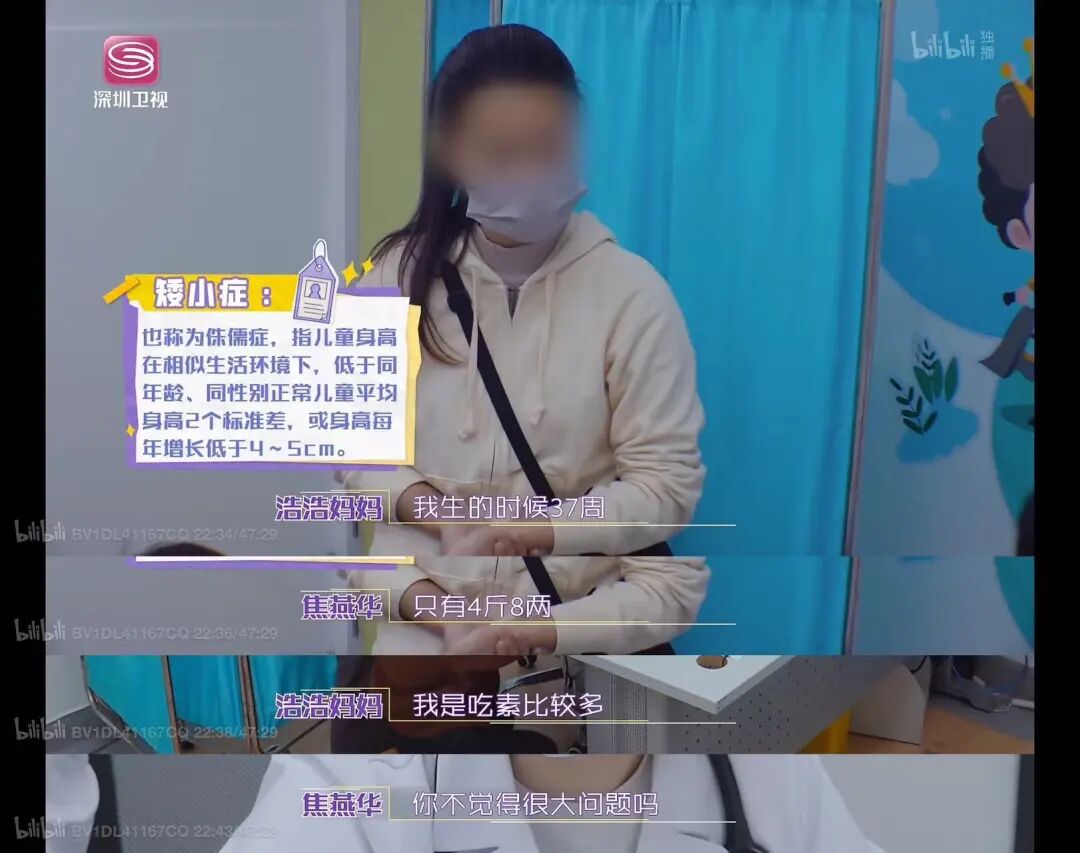 孩子3个月喝粥在与医生的交流中,母亲表示浩浩是怀孕37周时出生的,体重是4斤8两。“因为怀他的时候,我吃素比较多。”医生对此十分震惊:“孕期吃素你不觉得有很大问题吗?营养肯定跟不上啊。”但浩浩妈妈后续的回答才是更让人血压升高,她表示在一岁以内的喂养过程中,孩子因为吃母乳“上火”,所以会给孩子吃米粥,在出生仅三四个月的时候,就已经开始给孩子喂食粥水了。加之公婆家也是吃素的,孩子从小也跟着饮食清淡,“偶尔才会偷吃一点荤食”。